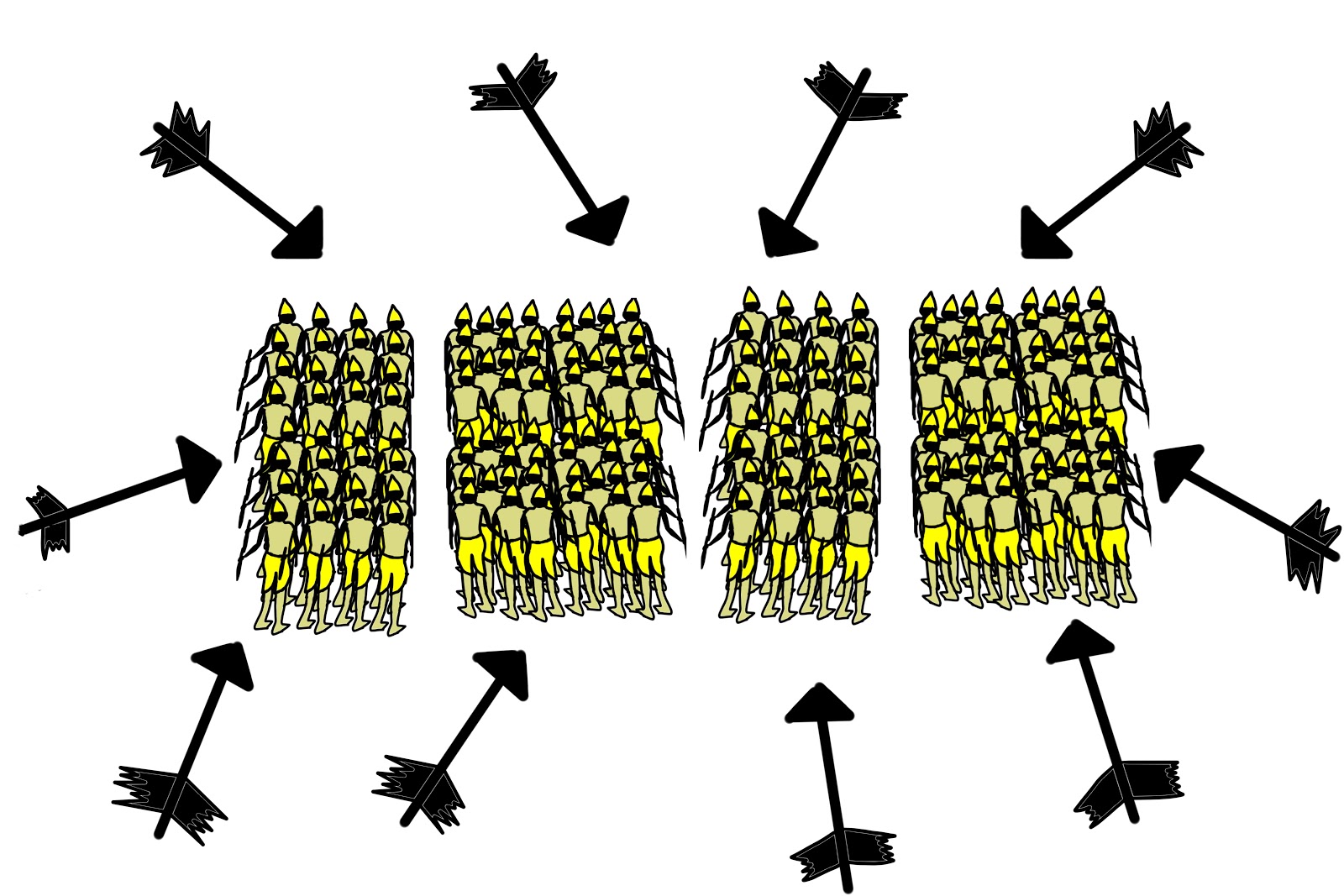 arrows-showering-on-an-army-from-all-directions attacking-person-being-pierced-by-shower-of-arrows cutting-an-enemy defeat-others-be-victorious enemies-showering-arrows