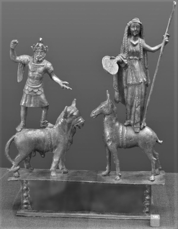 Another version of Jupiter Dolichenus & Juno from Germania; It’s unclear if she holds a mirror or a patera. But here her vAhana look like an ass. Just as the shambhu-para & shakti-para flavors of the tradition in our midst, this seems like a shakti-para variant of the romaka cult.