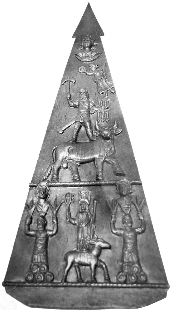The above is his cultic image from Hungary. Imagine what associations it might have brought to mind to a coeval H or Eastern Iranic. Of course the old iconography going back to the hittite Teshub of the bull-riding deity is apparent but we talking of the Roman age: Apart from the Greek elements Nike to the left & Athena with her spear; bottom right note the Greco-Roman Herakles to the bottom left – bridging the rudra-class of the west to the Indo-Iranic world (also lakulIsha). Above Athena note the Iranian fire altar-like emblem, keeping with the eastern locus of origin of the cult. However, in this image the fire altar is more like the Vestal fire altar (the gArhapatya equivalent of the Roman “shrauta” altars of the state), above which is the eagle of Jupiter.