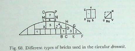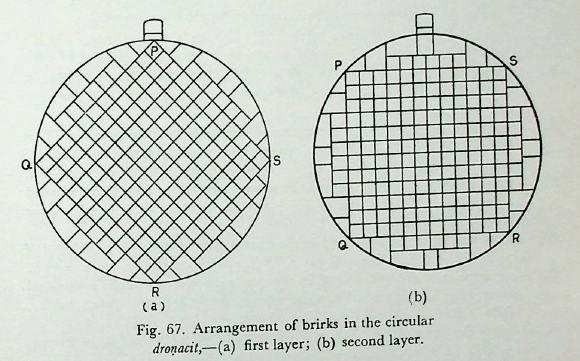 Fig. 67. Arrangement of brirks in the circular dronacit,—(a) first layer; (b) second layer.